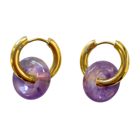 Marea Earrings ( Gold hoops & Blue Gem)
