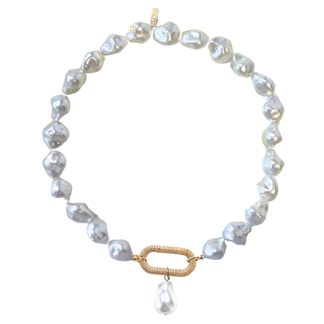El mix incluye el collar Lua, una cadena de perlas de cristal que evocan pureza y carácter, separadas por pequeñas cuentas doradas que añaden ritmo y luz a la composición. El charm Nuit, una perla suspendida de mayor tamaño, aporta movimiento y un aire magnético. Puedes completarlo con cualquiera de nuestros enganches bañados en oro de 18 k —Noa, Ona o Kora— para adaptarlo a tu estilo y forma de llevarlo.