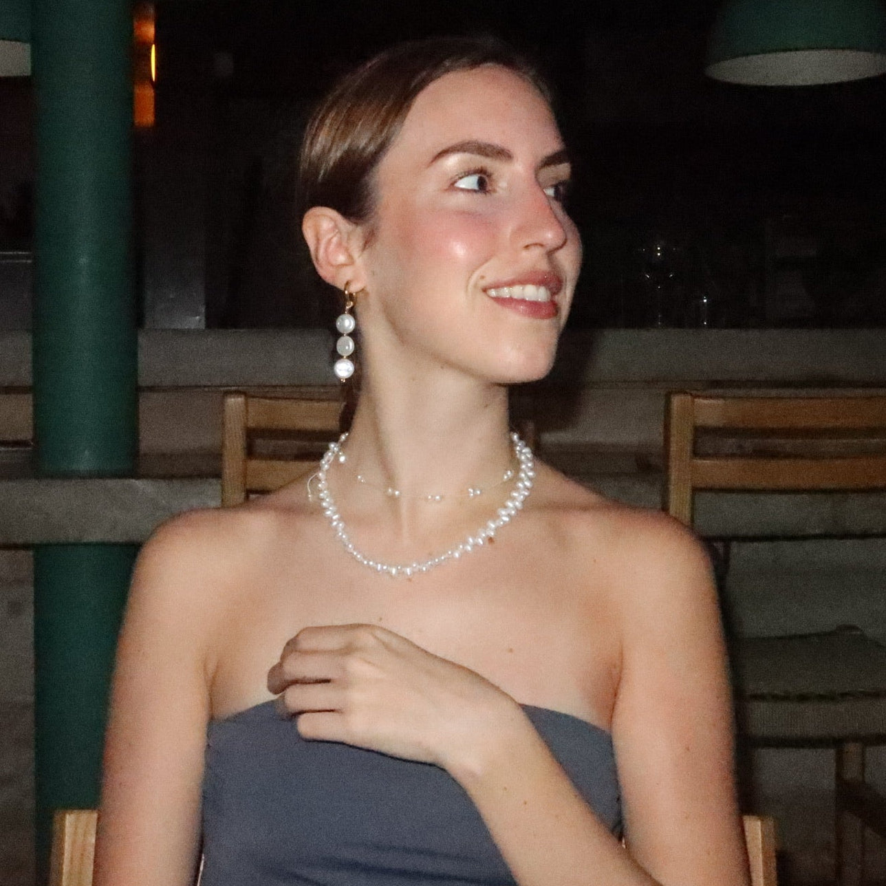 Our pearls are crystal pearls, offering a refined, luminous finish, while our gemstones are made from natural stones and minerals, each one unique in tone and character.