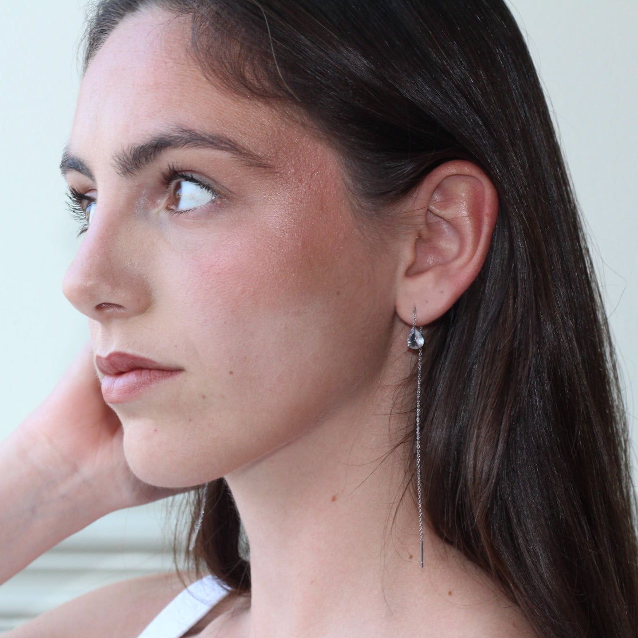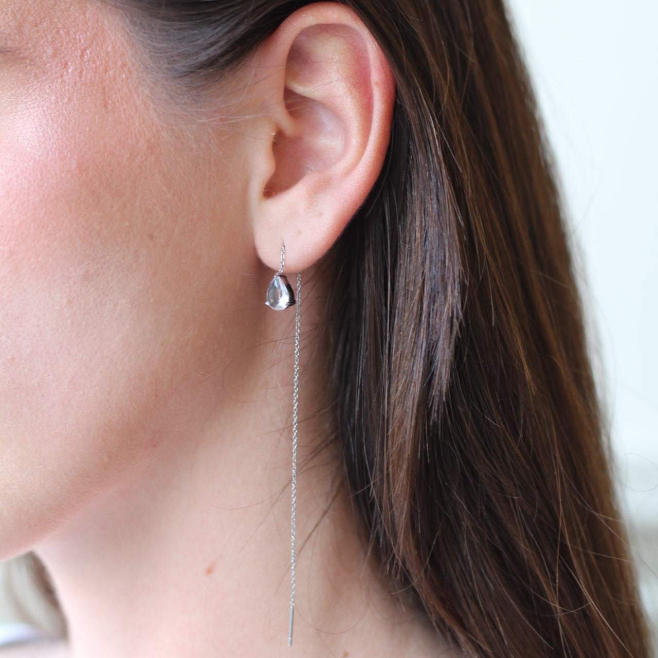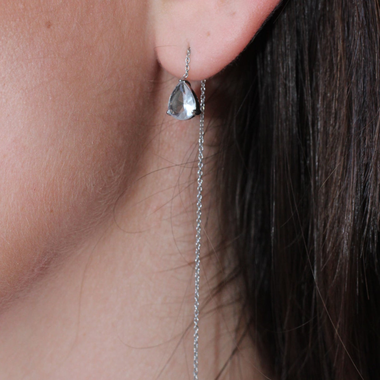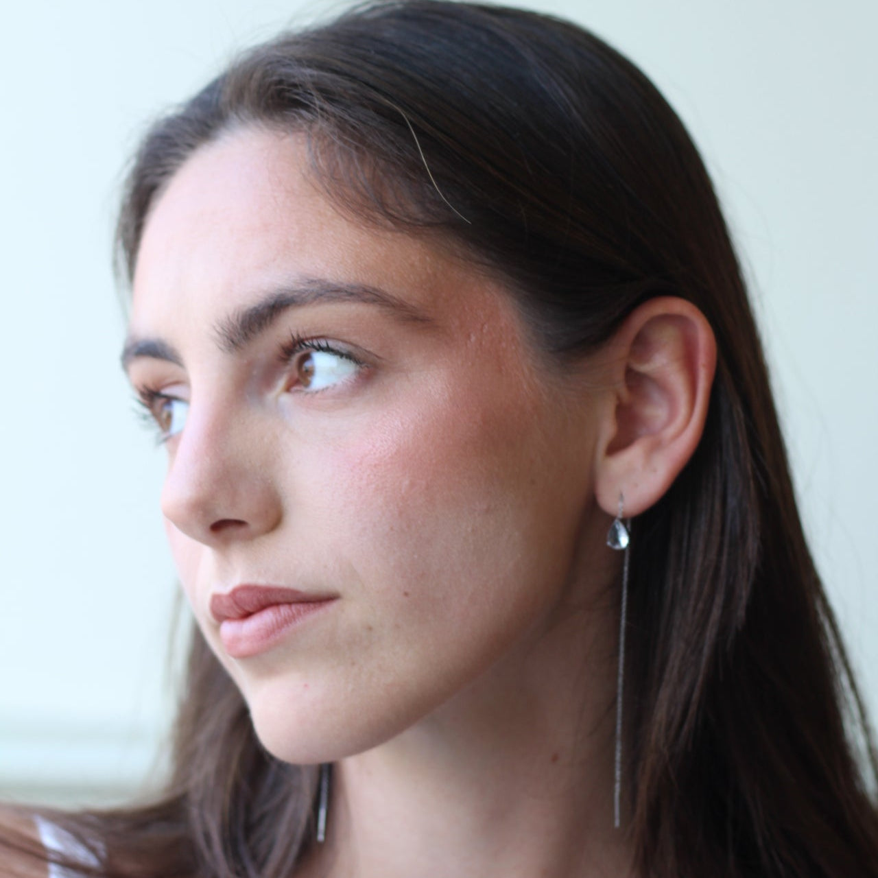 La tonalidad plateada del pendiente Clío (Kleio en griego), refleja la claridad y la elegancia del reflejo lunar en una noche estrellada. Este diseño delicado aporta un brillo resplandeciente y una sensación de serenidad a quien lo lleva puesto. Su toque único reside en la posibilidad de ajustar el diamantito a la altura que prefieras, personalizando tu look con sofisticación. Cleo es la elección perfecta para quienes buscan resaltar su luz interior con un estilo moderno y versátil.