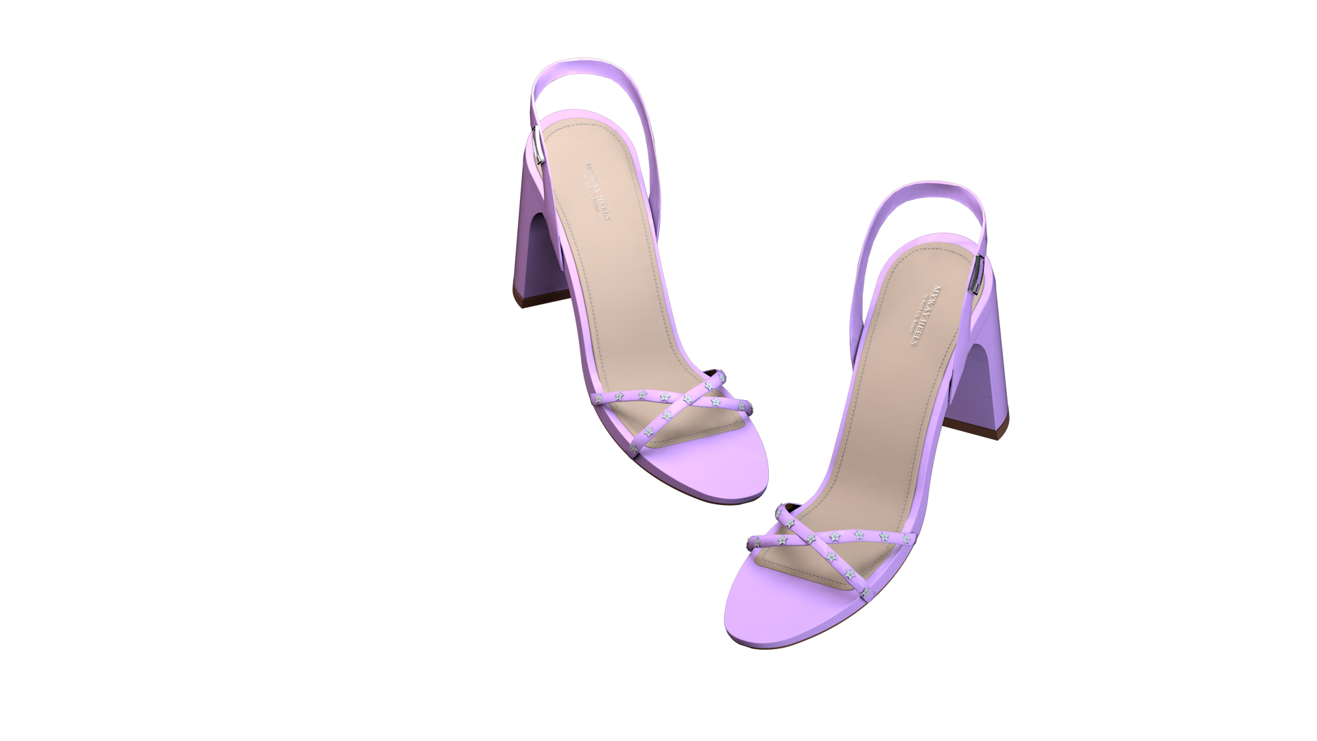 Violet high heel adorned with jeweled starts. Made out of the highest quality, available in three different heights. (3, 5 and 7cm). The Lilac models equals fun, risk and love. With your pair of lilac you will be in the spotlight at any event, party or cocktail. Are you trend follower or creator?